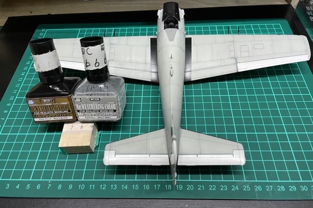 機首側が仕上がったらマスキングを剥いで、ムラがムラムラになった所をガルグレーで「仇討ち」塗装。再度ススで「返り討ち」塗装。これは想定済みで、機体側面の国籍マークのデカールを貼ってないのはその為です。