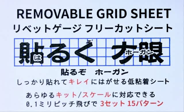 繰り返しになりますが、大量生産品に個性を盛り込む事で世界にひとつだけのものに仕上げる醍醐味を味わいたい、そのモデラーの一助として貼るぞホーガンを世に送り出します。ネーミングはチャラいですが、製品は四角四面の方眼カタブツヤローです。凸リベットの再現にドクターリベットもよろしく!