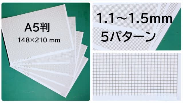1.1/1.2/1.3/1.4/1.5mm方眼シート 5パターン各1枚入り