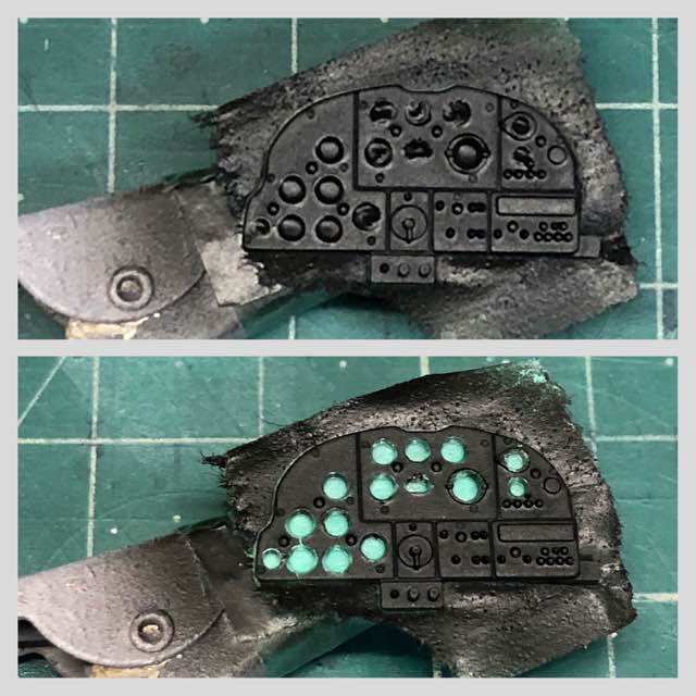 計器盤のガラス部分は塗っちゃあからんばい!とあるので、模型用のマスキングゾルはこのちっちゃい丸をマスクするには粘性が強過ぎるのだ!