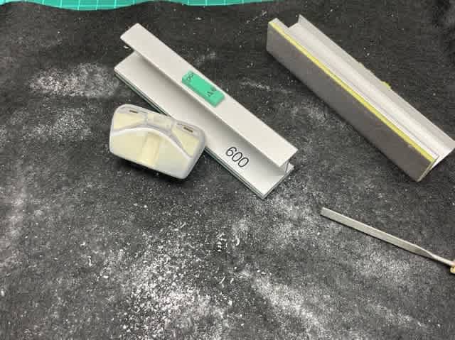 切削で出る粉体の処理に、洗えるフェルトを敷いた上で研磨作業をしています。散らからないうえに、簡単に洗えるので大判のフェルトを裁断して洗い替えを数枚揃えておけば、掃除で中断することもなくなります。
